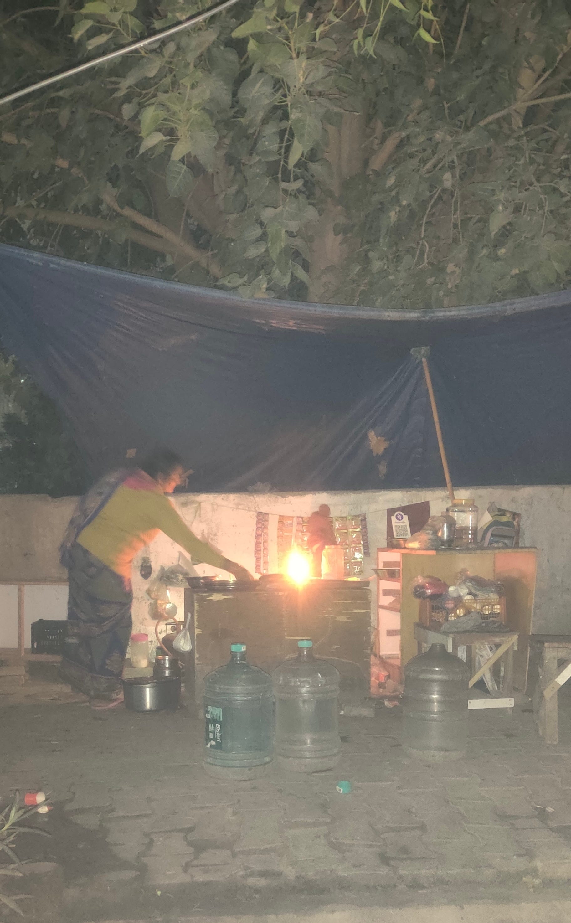 Delhi is full of such tea stalls. You can find it in every nook and corner, sometimes under a tarpaulin, sometimes on carts under the shadow of Metro bridges, and sometimes right outside the offices’ complexes. The tea sellers keep big, glass jars with baked and fried items, which many Delhiwallah enjoy along with the tea which is cooked for way too long. It was evening and many visited such stalls for tea, friendly bantering, and exchanges of current political views or just out of habit. In Delhi, tea is not a beverage, it is a habit.
