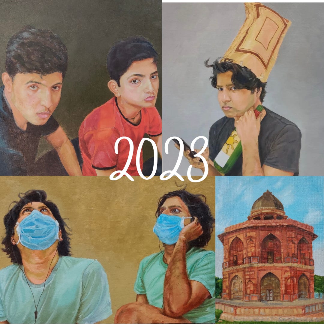 The year 2023 has been a very special year of my life. A total of 16 paintings and one work-in-progress. I began to write blogs after a long battle inside my head about what-will-people-think of my writing. I wrote eleven blogs in this year (2023). It took me a long time to be comfortable that people would read my pieces. Is my grammar correct? I had nightmares about that.